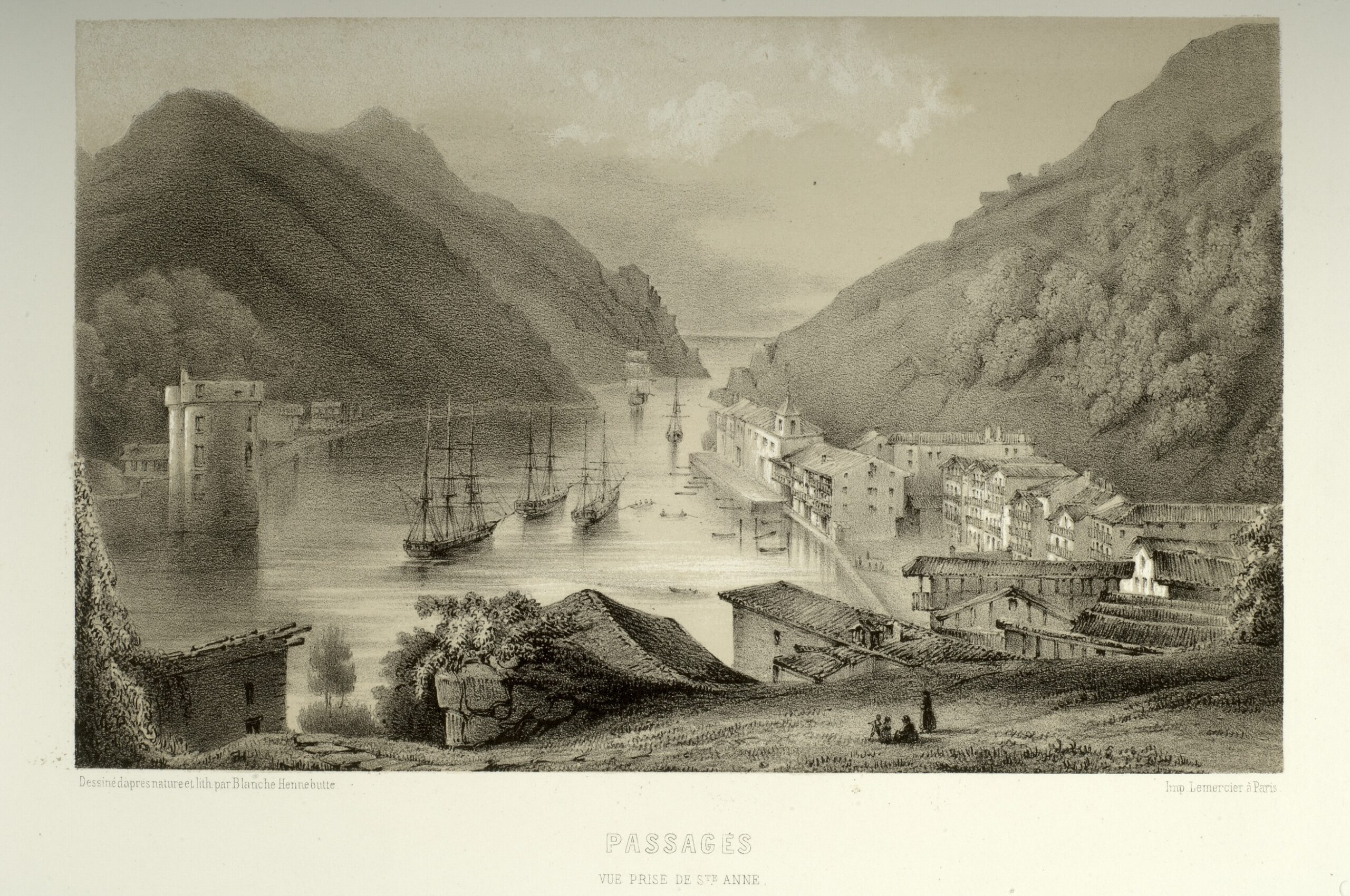 Parte de un álbum de litografías en dos partes: Francia (pl. 1 a 17) y España (pl. 18 a 28). 2 pl. en frontispicio y un plano de la Côte de Biarrits (es decir, Biarritz)